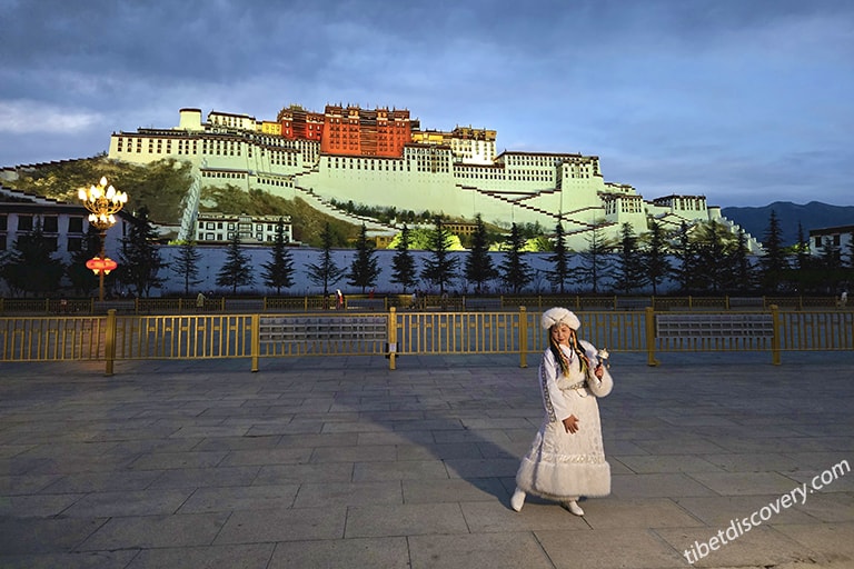 Optional Activity: If there is extra time, it is highly recommended to watch the outdoor live performance of Princess Wencheng at evening. Princess Wencheng Show, performed usually during 21:30~23:00 (late April to Early October), presents the Chinese and Tibetan history and culture through the story that Princess Wencheng of Tang Dynasty married Songtsen Gambo 1,300 year ago. Since the performance is outdoors and the nighttime temperatures in Lhasa are relatively low, please make sure to dress warmly in advance.