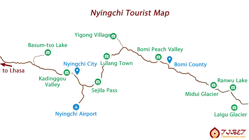 Location Map of Nyingchi Attractions (Click to Enlarge)