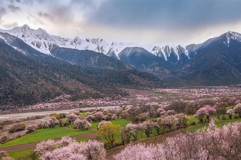 Today's Highlights: Bomi Peach Blossom Valley, Galang Village, Runa Village, Gutong VillageAfter breakfast, begin an in-depth exploration of Bomi Peach Blossom Valley, one of Nyingchi's most celebrated peach blossom regions. Nourished by the Yarlung Zangbo River, the valley's peach trees produce larger and exceptionally vibrant blooms. Majestic snow-capped peaks rise around the valley, creating a striking scene where spring flowers seem to be gently embraced by lingering winter.